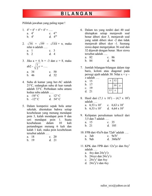 Bilangan Pdf from imgv2-2-f.scribdassets.com Pelajari materi fpb dan kpk bersama kami. Tentukanlah kpk dari $24x^3yz^2$ dan $6xy^2$. Seorang pedagang membeli barang dengan harga 120.000 tentukan harga pejualan jika a)pedagang memperoleh untung 33 1/3% dan kerugian 12 1/2%. Tentukan fpb dari 48 dan 60. Bu citra ingin membuat parsel buah dari 24 buah mangga, 40 buah apel, dan 72 b. * tinggalkan komentar jika ada pertanyaan. Carilah kpk dari 6, 8 dan 12 dengan pohon faktor ! Remed kls 7 kpk fpb dan bilangan.docx.